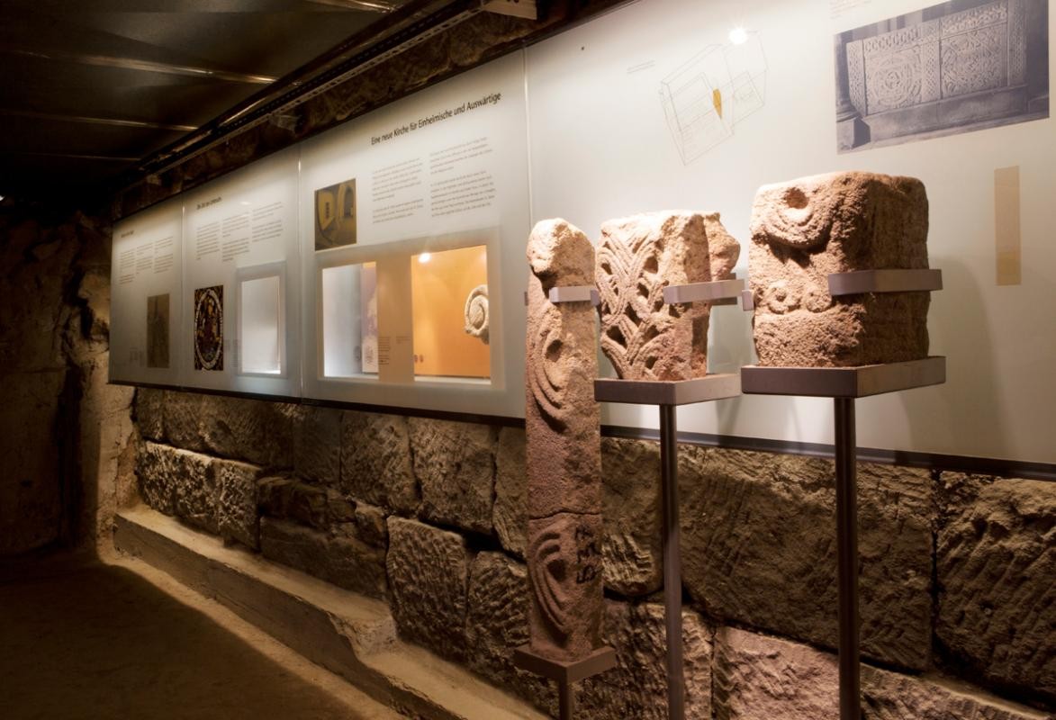 Bei Bauarbeiten für eine neue Heizung stieß man 1960 auf die Grundmauern von zwei Vorgängerbauten. Beide sind für die Anfänge und Entwicklung der heutigen Stadt Esslingen von größter Bedeutung.
